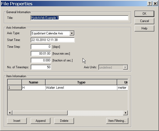 create a new time series file (Product Type MikeZERO) with suffix .dsf0