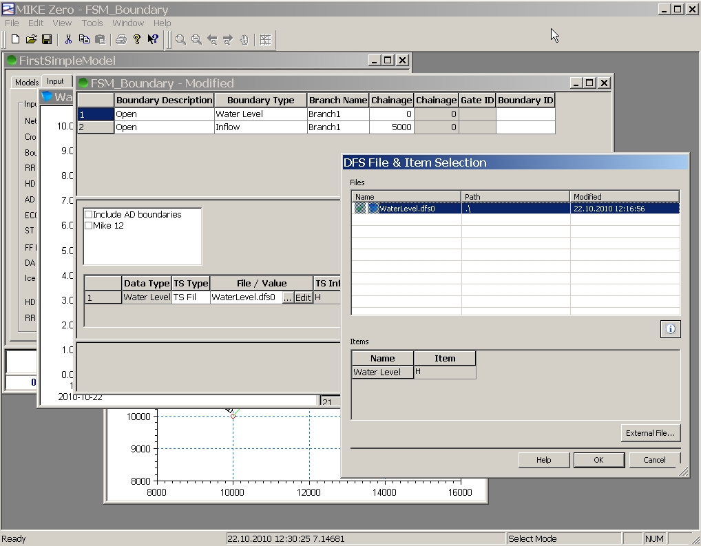 select the time series file and the item H in the boudary file for the water level boundary condition