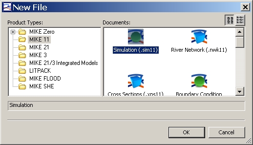 | File menu of MikeZero -> choose Mike11 files and then .sim11 suffix