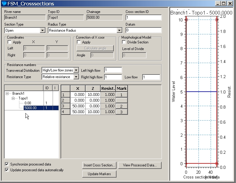 edit the cross section geometry to a rectangular shape of 50 m and 10 m depth